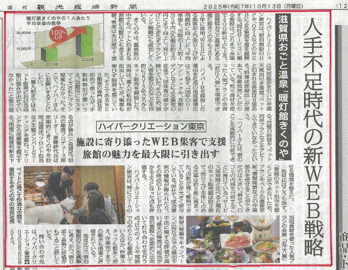 10月13日号の「観光経済新聞」に弊社サービスについて掲載いただきました。